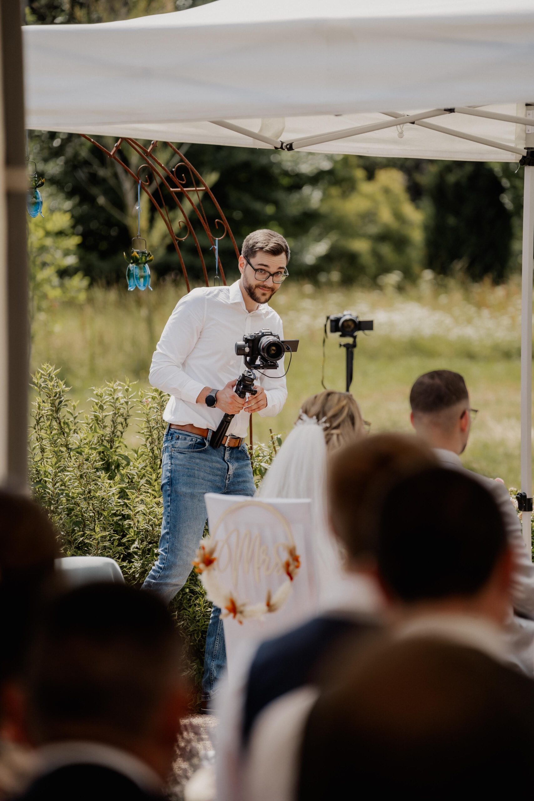 Mein technisches Herz sorgt für verlässliche Qualität: sauberer Ton, beständiger Look, durchdachte Abläufe und Back-ups. Mein kreatives Herz sucht das schöne Licht, die feinen Gesten, die kleinen Blicke dazwischen. Aus beidem entsteht ein Film, mit dem ihr die Emotionen eures großen Tages immer wieder aufs Neue hautnah erleben könnt.